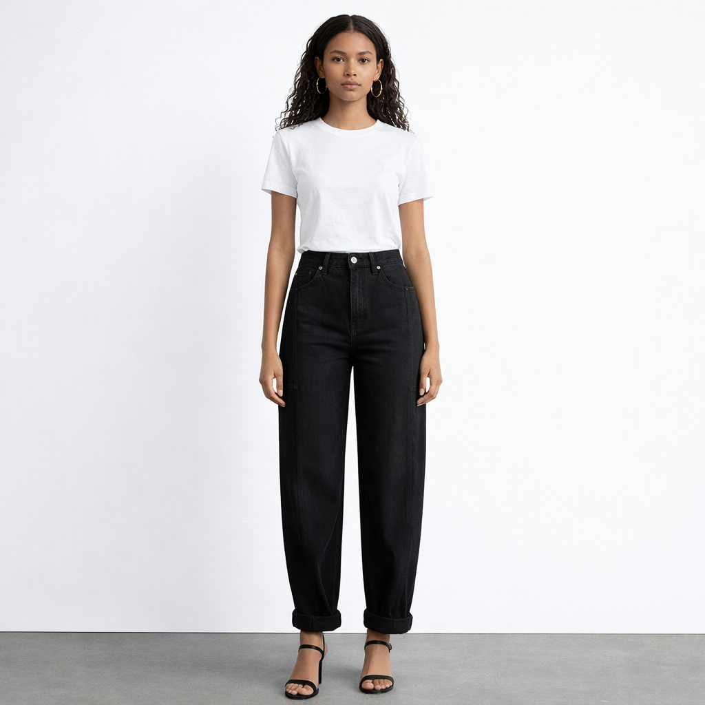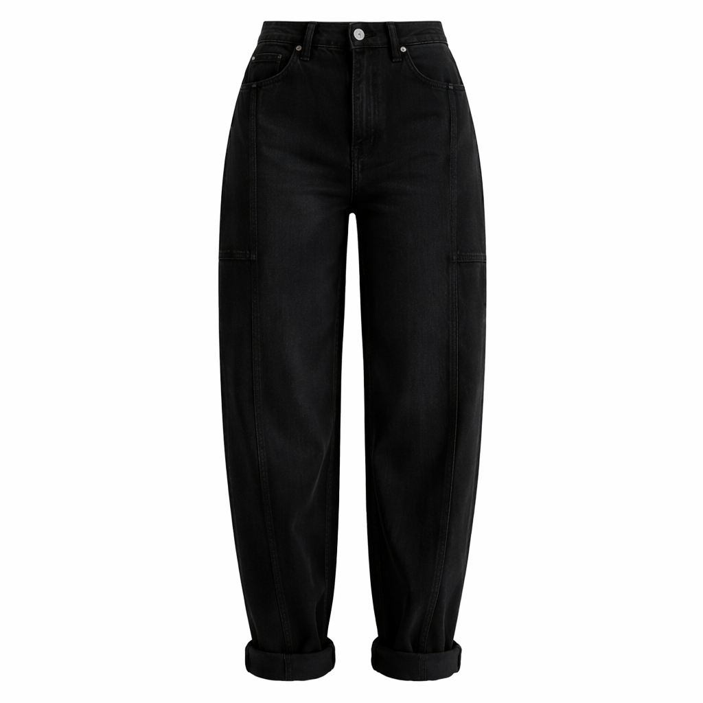 Calla Balloon Loose Fit High Waisted Denim Jeans-Black