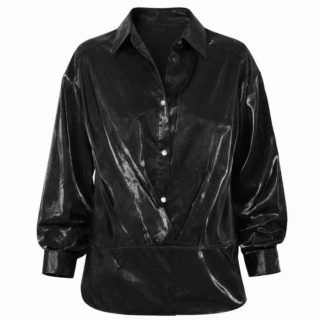 Liquid Metal Oversized Button Snap Metallic Glamour Top