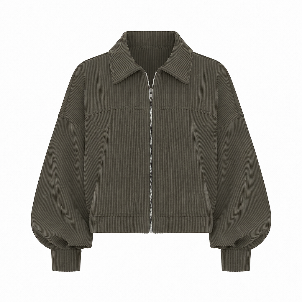 Exaggerated batwing silhouette meets city-cool chic. Fold-over collar, dropped shoulders, and textured stone finish make this Italian-crafted jacket effortlessly luxe and runway-ready.
