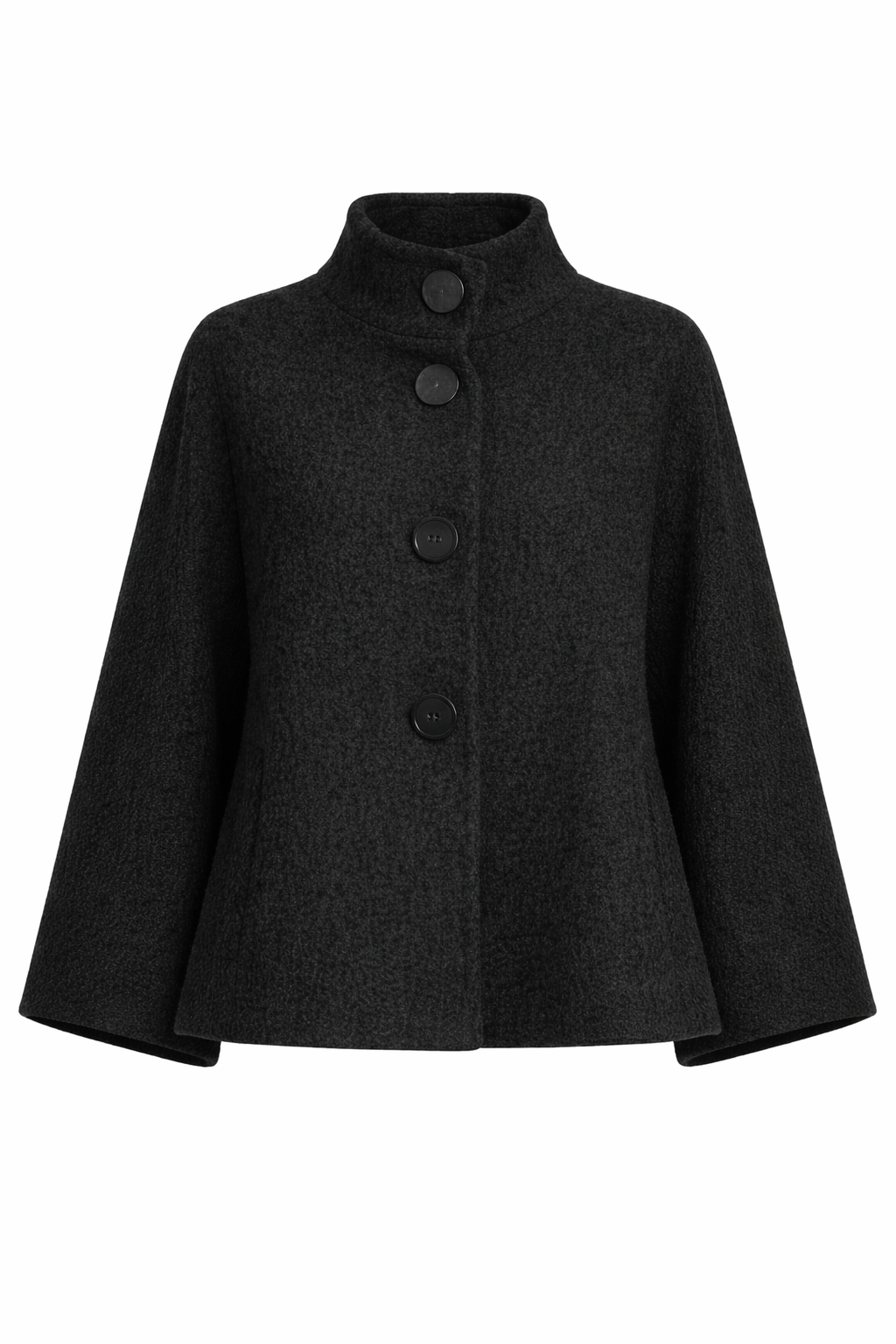 a statement poncho jacket with sculptural sleeves and effortless elegance.