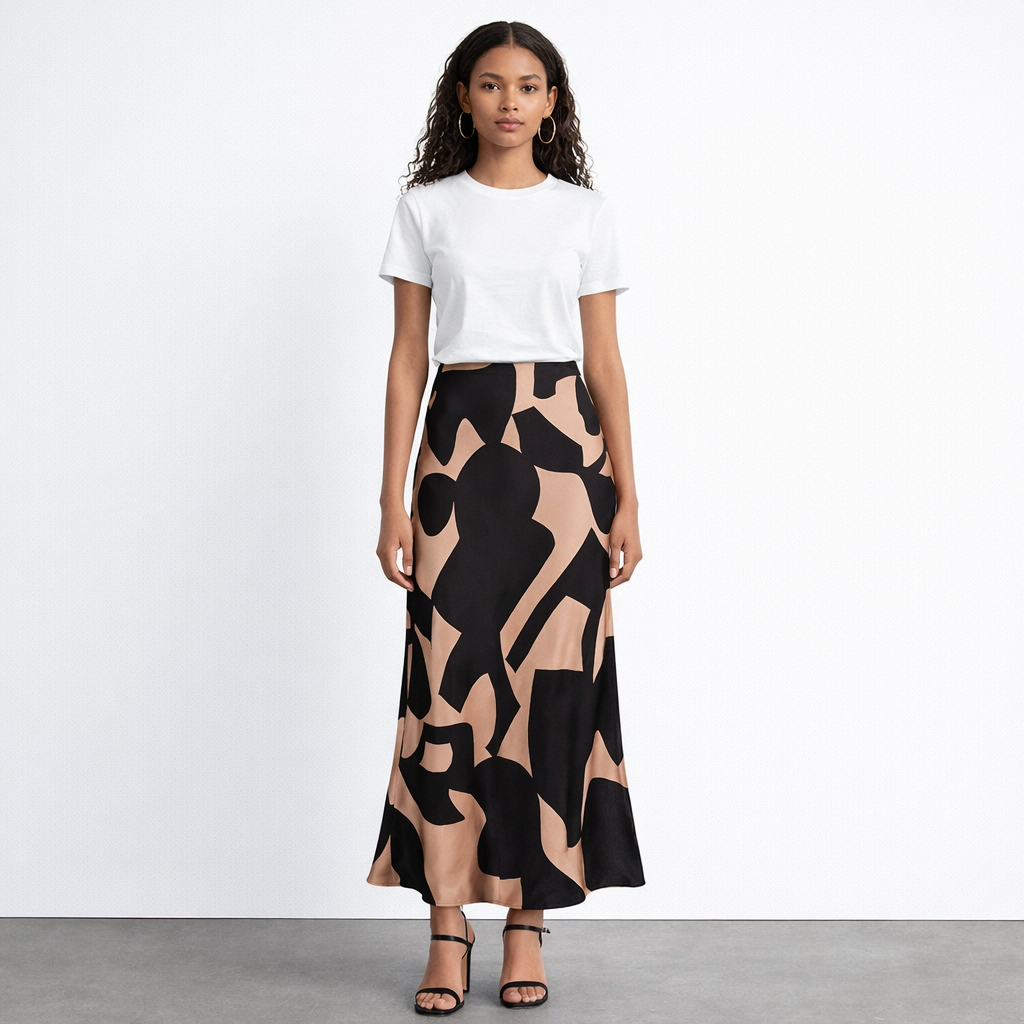 Sharon Satin Patterned Midaxi Skirt-Brown