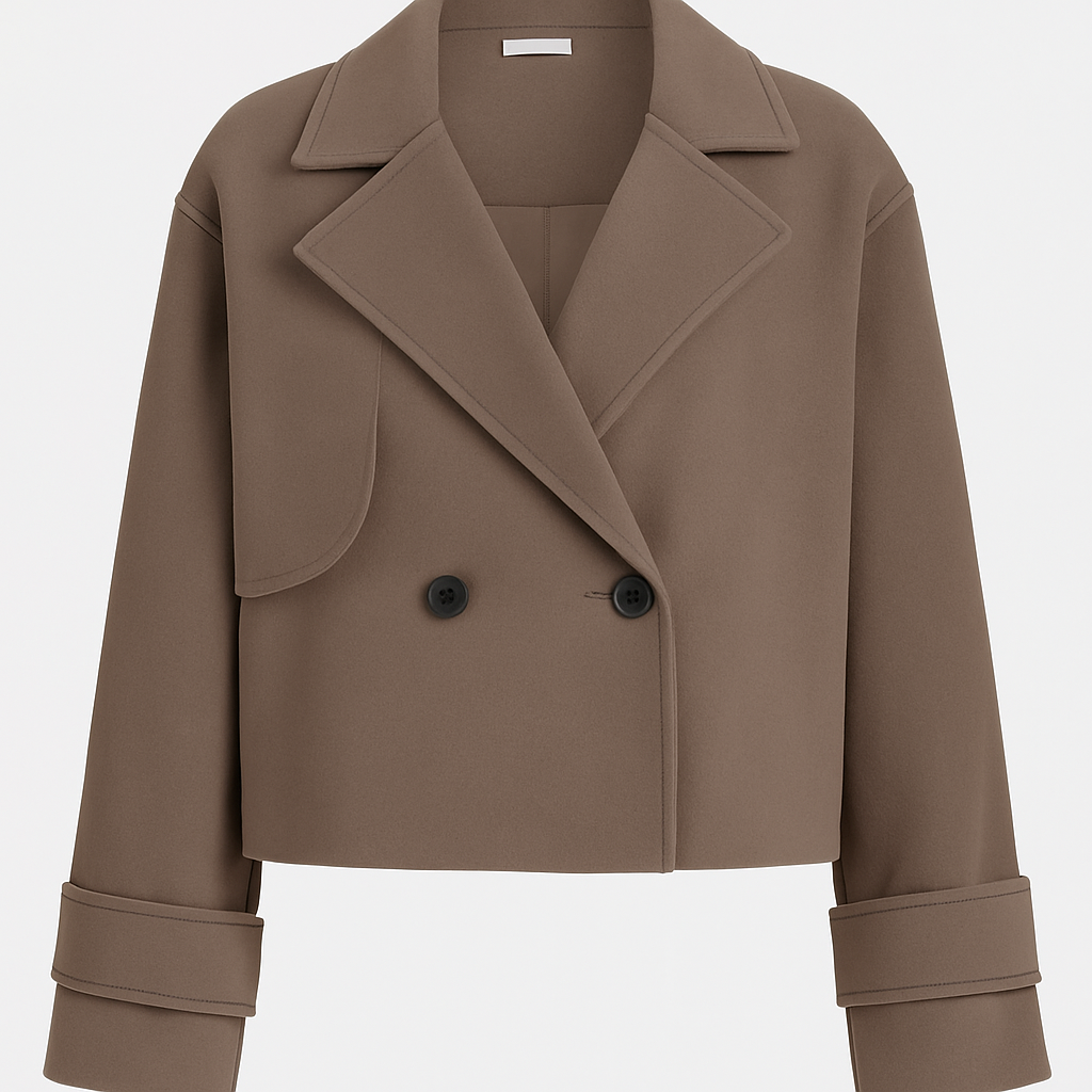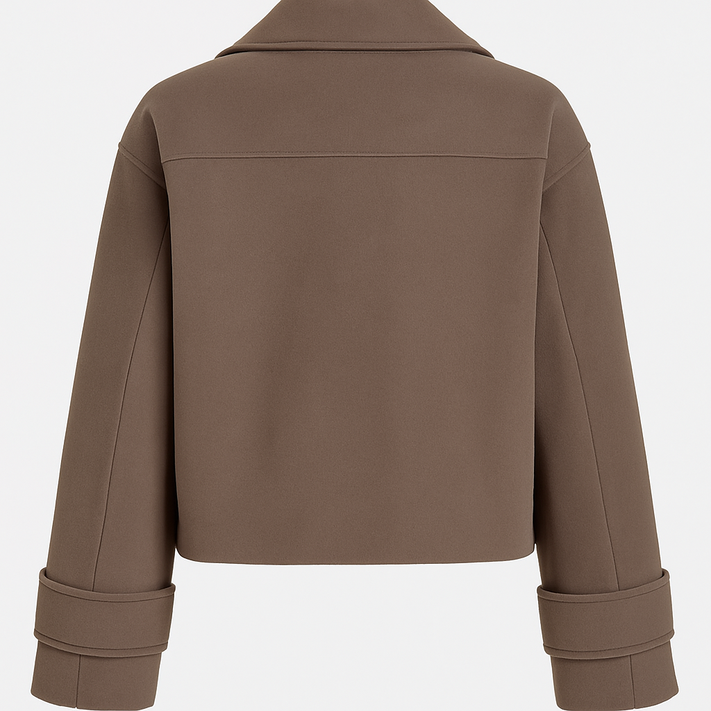 Veloura Cropped Double-Breasted Coat Jacket-Brown